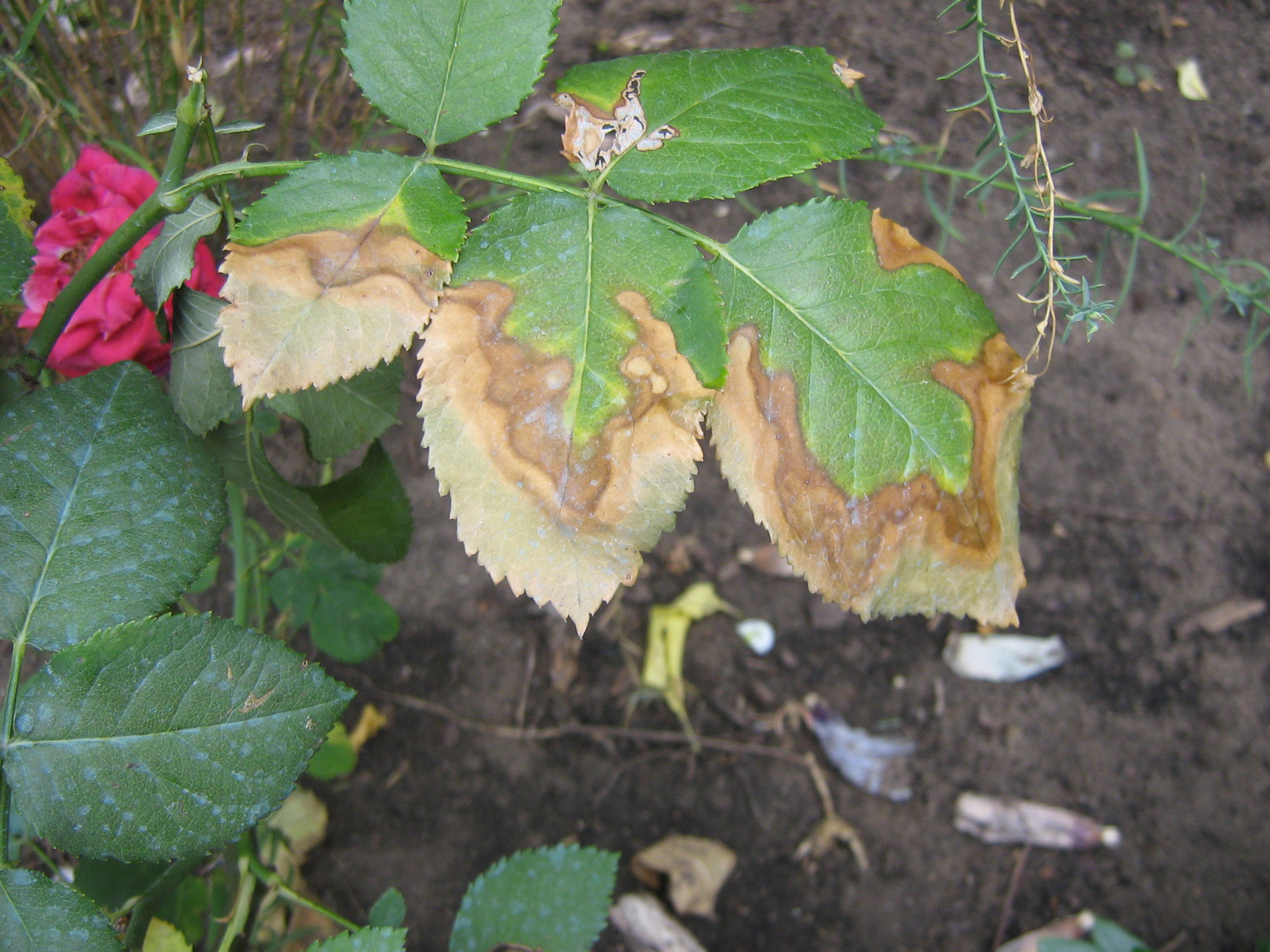 A rózsa levelei kezdetben a szélén, majd teljes egészében megbarnul, jobban mondva elszárad. Mi lehet az oka? Nem tűnik gombás betegségnek. Tavasszal lett átültetve egy korábbi helyéről, de helyrejött. A virágai viszont valamivel világosabb színűek lettek, mint korábban. Tápanyag probléma? Köszönettel. Papp József