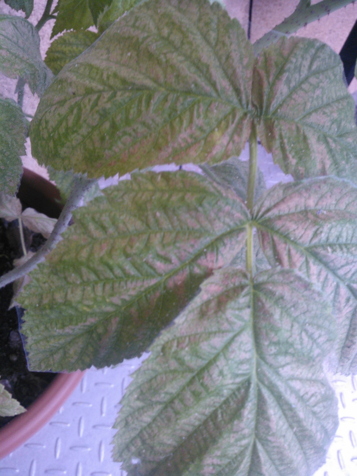 Kedves Csaba! A leveleken magnéziumhiány tünete látható. Komplex tároldattal öntözze meg a növényt, vagy keverjen a közeghez tartós hatású bogyósgyümölcs tápot. Áruházunkban több típus kapható. Egy közülük: http://www.gazdabolt.hu/mutragya/szabalyozott-mutragya/T08400-Compo-hosszu-hatastartamu-bogyosnoveny-tap-1-kg