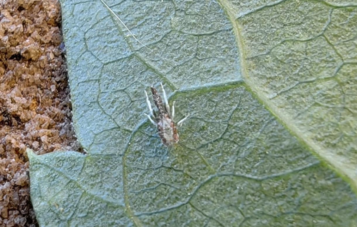 Kedves Erzsébet! A fotón tripsz látható. A tartózkodási helye a levél fonákán van, a levél színén szívogat. Kifejlett alak és tojásai. Ha csak néhány példány látható, akkor is védekezni kell, mert felszaporodása gyors és sok nemzedéke van. A Laser Duplo használatát javaslom (természetes eredetű hatóanyag). A permetléhez célszerű kis mennyiségben tapadószert (Biosol káliszappan, Nonit) keverni. A kezelés célszerű megismételni 2 héten belül.