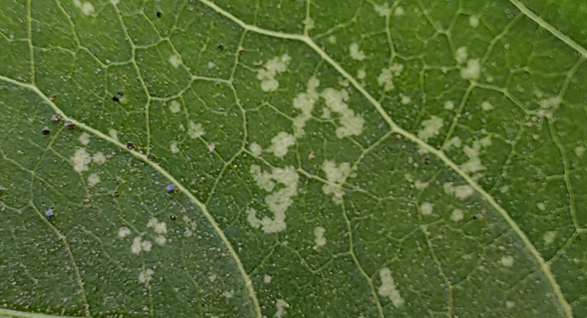 Vadszőlő levelén, fehéres ezüst pettyek.