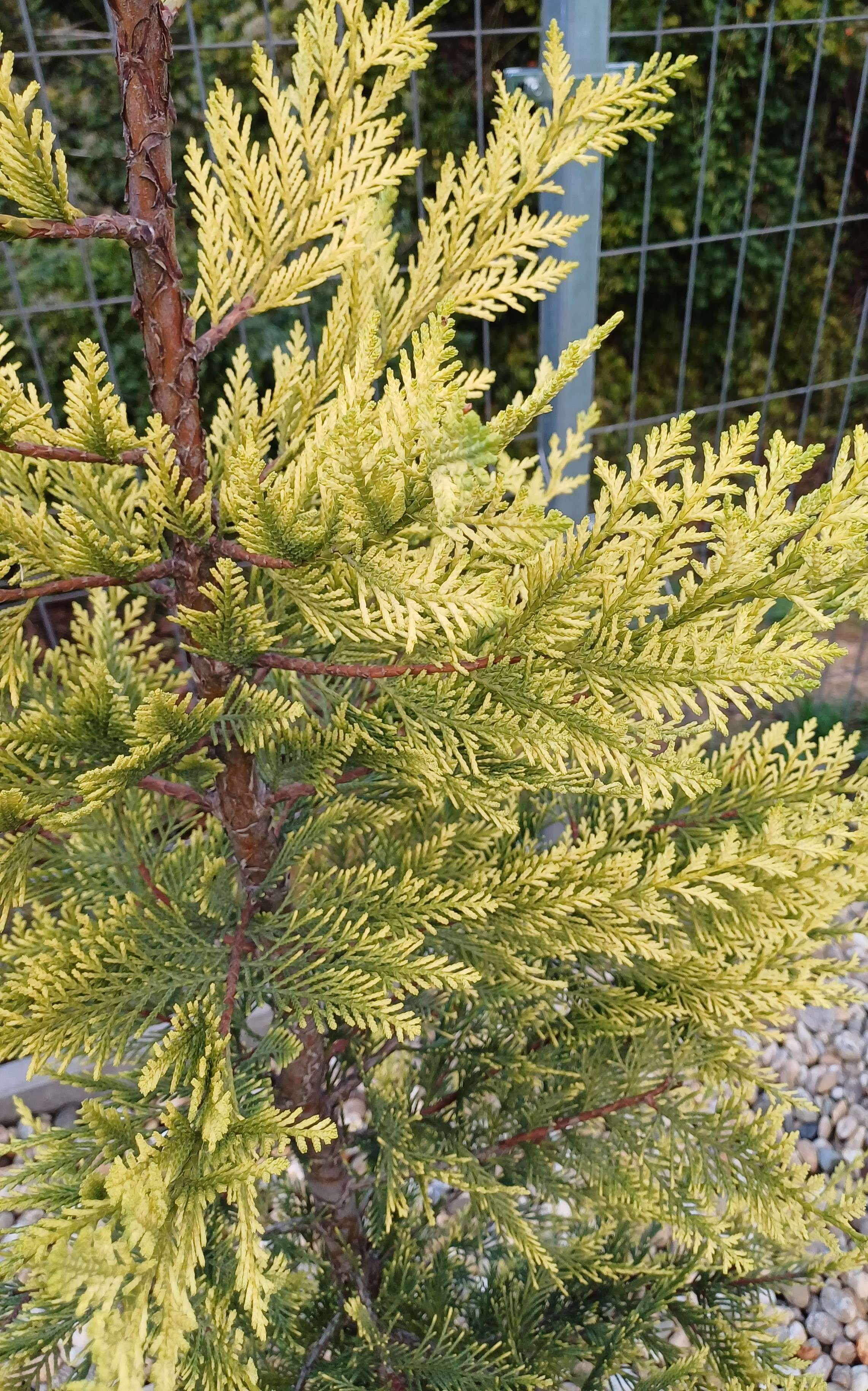 Két gondolatom van. Az egyik, hogy a sárguló növény eredetileg zöld volt? Van ugyanis egy Gold Rired fajtája a leylandiinak. A másik, ami valószínűbb, hogy tápanyaghiány az ok. A kavicságy, plusz ha van alatta geotextil, nagyon aggályos. A talaj alatta lehet, hogy nem szárad ki és nem gyomosodik, de levegőtlen lesz és túl nedves, tömörödött. Ezt nem kedveli a leylandii.