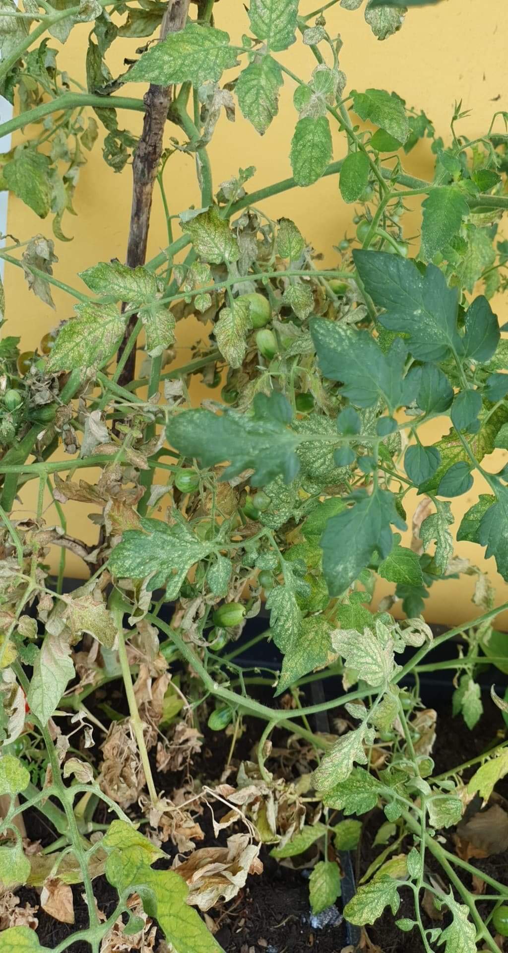 Balkonon, magaságyásban nevelt paradicsomom a nyaralásból visszatérve így fogadott. Az elszáradt leveleket eltávolítottam. Hogyan tudnám megállítani ezt a folyamatot, hogy ne menjen tönkre az egész növény? Permetezés, tápoldat? Ha permet, lehetséges lenne valamilyen házilag megoldható szerrel is, vagy mindenképp erősebb permetszer javasolt?