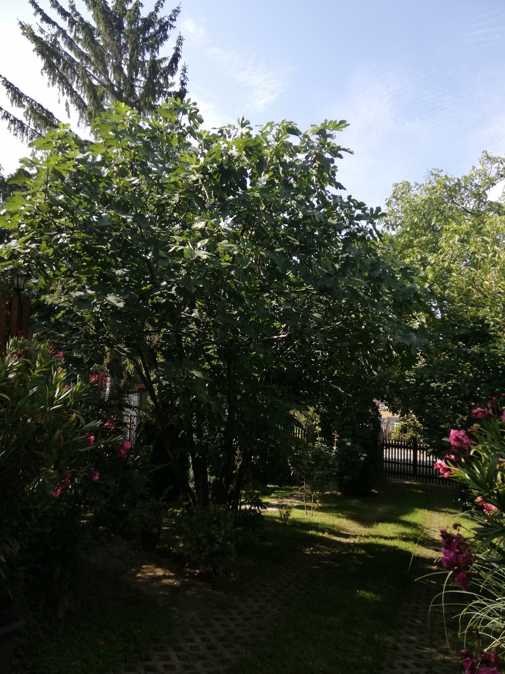 A fotókon látható fügefa (bokor) növekedése elérte a cca. 6-8 m magasságot., így nehéz a gyümölcsöket leszedni.
